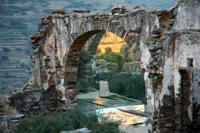 Ερείπια που χάσκουν ανοιχτά στον χρόνο και βαμμένα στις αποχρώσεις του ήλιου που γέρνει είναι η πρώτη αφ' υψηλού εικόνα. Μια πιο ολοκληρωμένη όψη του χωριού με τα 15 σπίτια της τυπικής ανώνυμης αρχιτεκτονικής του Αιγαίου, που χρονολογείται ήδη από τον 14ο αιώνα, αποκαλύπτεται στην κάτοψη που μας υποδέχεται μαζί με τις «οδηγίες χρήσης» του χώρου.