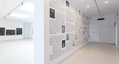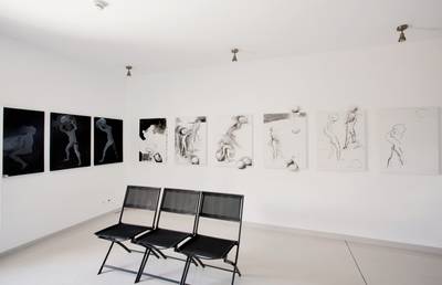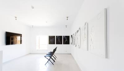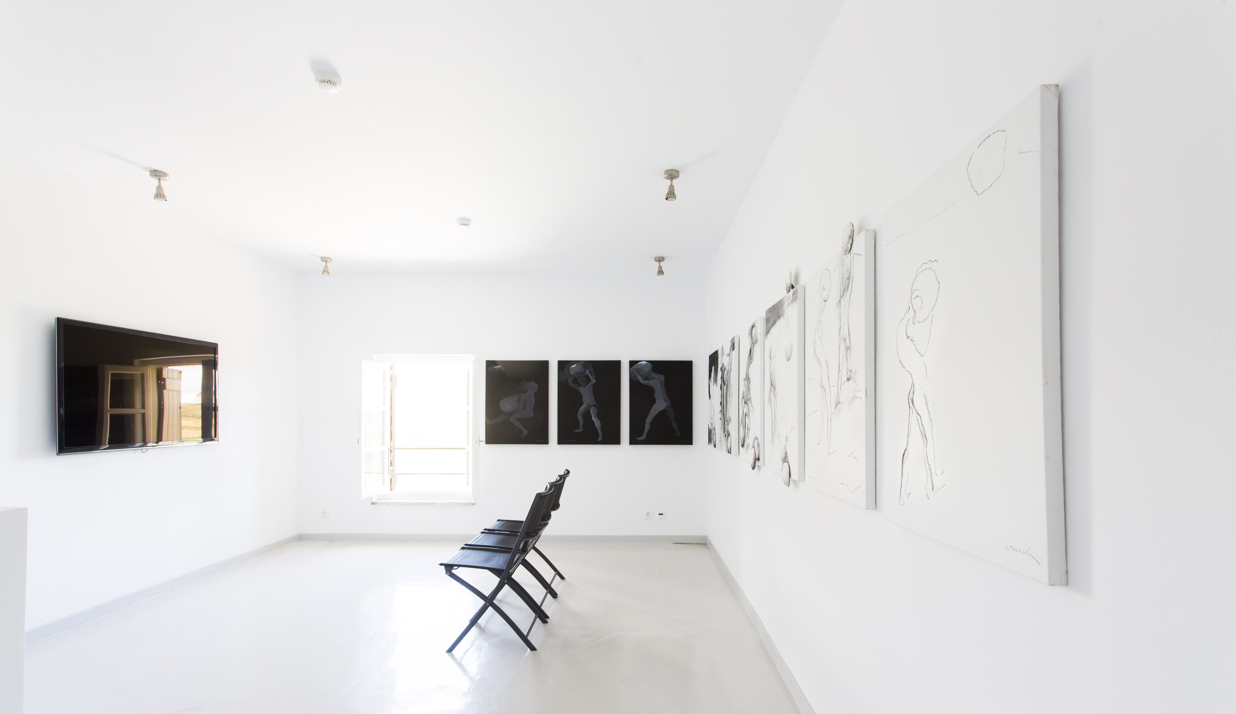 Στον επάνω όροφο του Μουσείου, η βιντεογραφημένη συνομιλία του Τσόκλη με τον Θανάση Λάλα που πραγματοποιήθηκε κατά την αφιερωματική βραδιά στο Μέγαρο Μουσικής για το "Τι, το Πώς και το Γιατί της δημιουργίας”, (ένα μάθημα ζωής για τους παρευρισκόμενους) περιβάλλεται από τα σχέδια του έργου "Σίσυφος” που πραγματοποιήθηκε και παρουσιάστηκε το 2015 στην Fondazione Alberto Burri, στην Ιταλία.