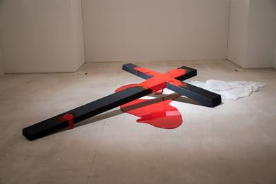 Η έκθεση στο ΕΜΣΤ τέθηκε υπό την αιγίδα του σημαντικού οργανισμού ICOM (Διεθνές Συμβούλιο Μουσείων). Περιέλαβε ιστορικά έργα όπως «το Καμακωμένο ψάρι» που πρωτοπαρουσιάστηκε στη Μπιενάλε της Βενετίας το 1986, αλλά και τον πιο πρόσφατο «Σίσυφο», που πραγματοποιήθηκε το 2015 και παρουσιάστηκε στην Fondazione Alberto Burri, στην Ιταλία.