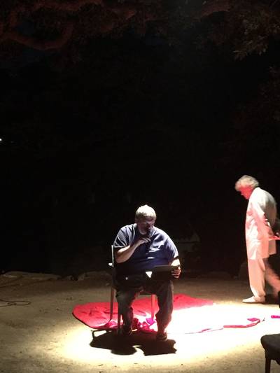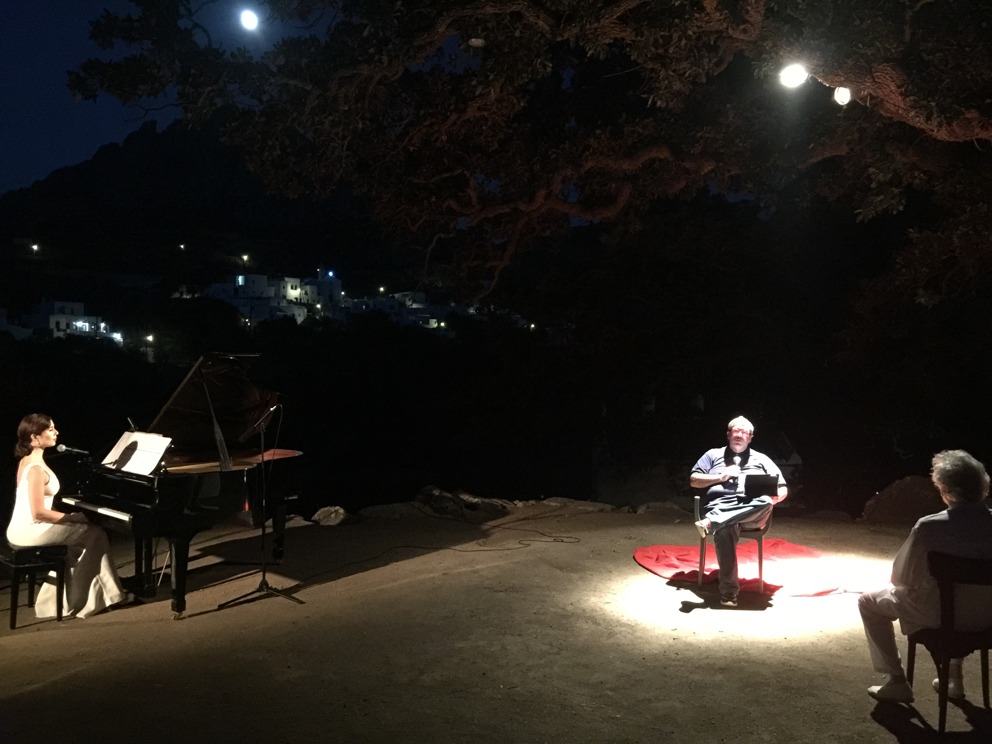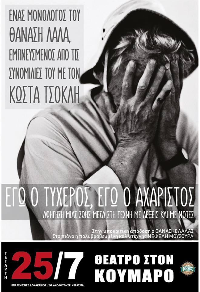 Την Τετάρτη το βράδυ, στις 25 Ιουλίου 2018, επιτελέστηκε στο Θέατρο στον Κουμάρο στην Τήνο, μια ιδιότυπη λειτουργία. Μέσα σε μια κατανυκτική σιωπή, είδαμε και ακούσαμε αυτό που καθένας από εμάς θα επιθυμούσε ίσως, να έχει πει ή να έχει κάνει. Ο Θανάσης Λάλας, εμπνεόμενος από τις πολύωρες συνομιλίες του με τον Τσόκλη, (τις οποίες έχει καταγράψει κατά καιρούς), τόλμησε (βάζοντας τον εαυτό του σε δεύτερη μοίρα) να προβάλει και να ηρωοποιήσει το πρόσωπο του καλλιτέχνη, προβάλλοντας τους πιο ανατρεπτικούς συλλογισμούς του και τις πιο σημαντικές στιγμές της ανθρώπινης πορείας του. Είδαμε έναν Θανάση Λάλα να μεταμορφώνεται σε Πυθεία καθισμένος σε μια υποθετική λίμνη αίματος, (χαρακτηριστική εικόνα της δουλειάς του Κώστα Τσόκλη), την πιανίστα Νεφέλη Μούσουρα να ερμηνεύει μέρη έργων μεγάλων μουσικών, προσφέροντας μεγαλόψυχα το ταλέντο της στο βωμό της γοητείας του όλου θεάματος και τον ίδιο τον καλλιτέχνη να πλανάται στο χώρο της σκηνής με απέραντο σεβασμό τόσο προς τον Λόγο όσο και στη Μουσική. Ένα πρότυπο δίδαγμα αλληλοσεβασμού μεταξύ των τριών καλλιτεχνών.