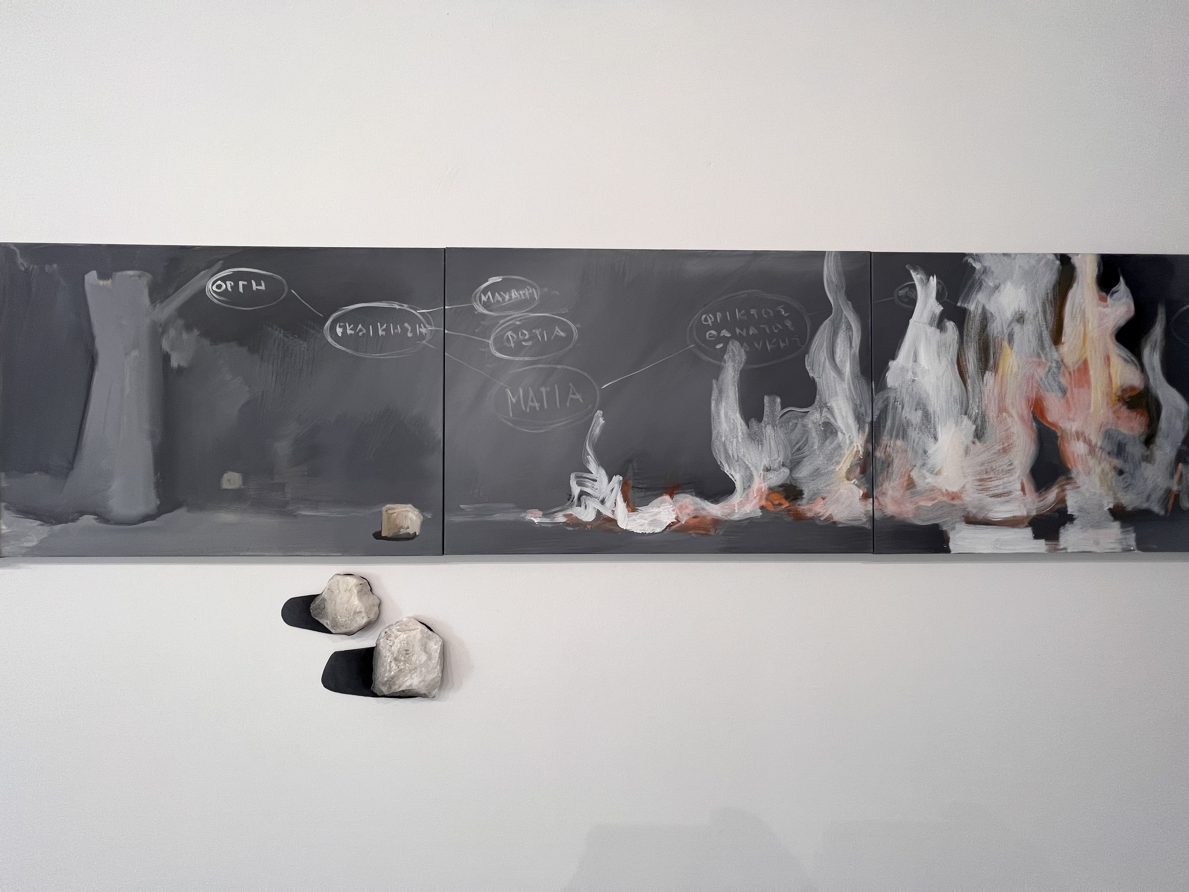 Η τρίτη αίθουσα είναι αφιερωμένη στην Τήνο. Στους ουρανούς και στη γη της. Τα «Ουράνια σώματα...» φτιάχτηκαν στο νησί το 2020 για την αναδρομική έκθεση ζωγραφικών έργων του Κώστα Τσόκλη στο Ίδρυμα Β. Μ. Θεοχαράκη και τα χωμάτινα έργα «Γένεσις» το 1992, όταν ο Τσόκλης ανακάλυπτε τη γοητεία της Τήνου, στο αποκαλυπτικό γρανιτένιο σύμπαν της Βωλάξ και του Πετριάδου.